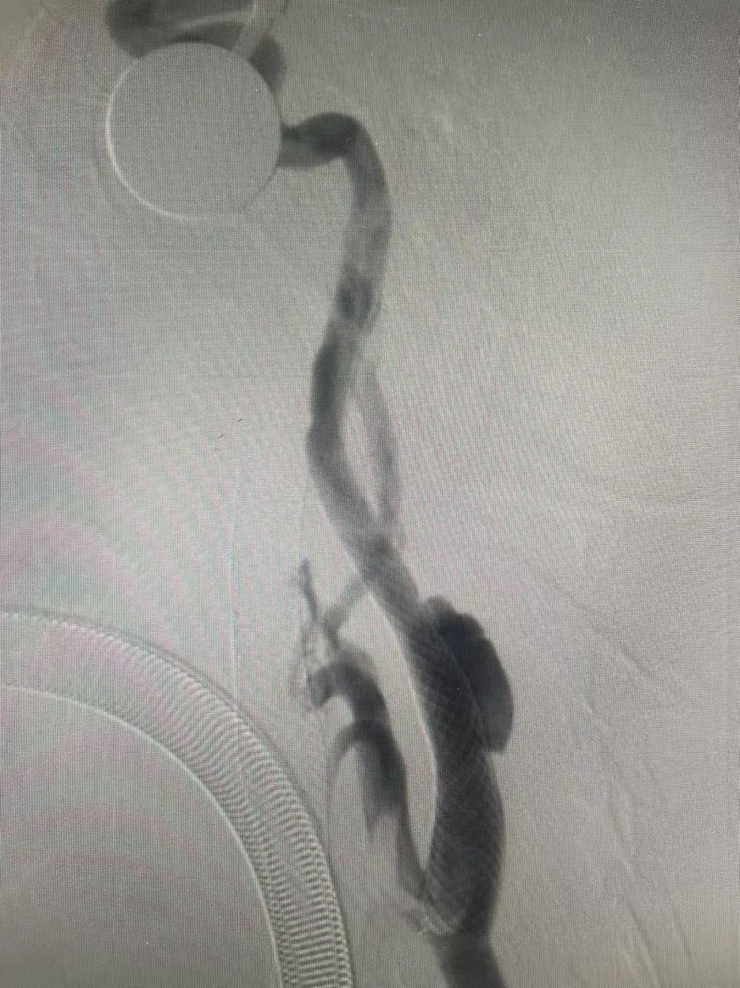 经过医院神经内科介入团队积极救治,行右侧颈内动脉急诊取栓术及右侧颈内动脉支架植入术;